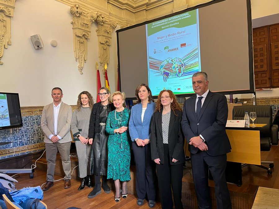 El encuentro se ha inaugurado en la Facultad de Ciencias Jurídicas y Sociales de Toledo por su decano, José Alberto Sanz Díaz-Palacios; la presidenta de la Asociación de Familias y Mujeres del Medio Rural (AFAMMER), Carmen Quintanilla Barba; y las presidentas del comité científico del congreso y profesoras Pilar Laguna Sánchez y Cristina Díaz García. Esta última considera que el congreso se identifica con la misión Cátedra AgroBank Mujer, Empresa y Mundo Rural que ella dirige: “alcanzar un mejor cumplimiento y desarrollo de objetivos en el ámbito de la igualdad y el mundo rural, facilitando la transferencia de conocimiento científico aplicado y práctico a través de la investigación, la formación y el fomento del emprendimiento en áreas rurales.”